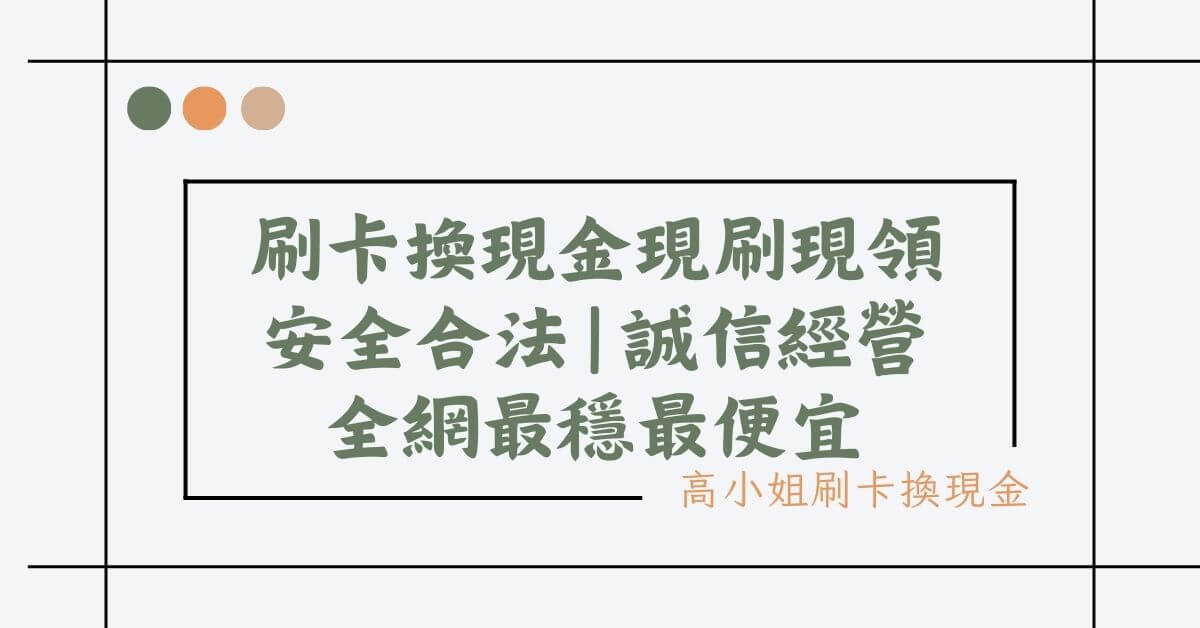 「刷卡換現金」是用信用卡額度購買商品,由高小姐付現直接收購,可以快速取得現金!跟平常的消費行為相近,但你當使用信用卡購買商品後,可以將這些商品轉售給別人,以換取現金。