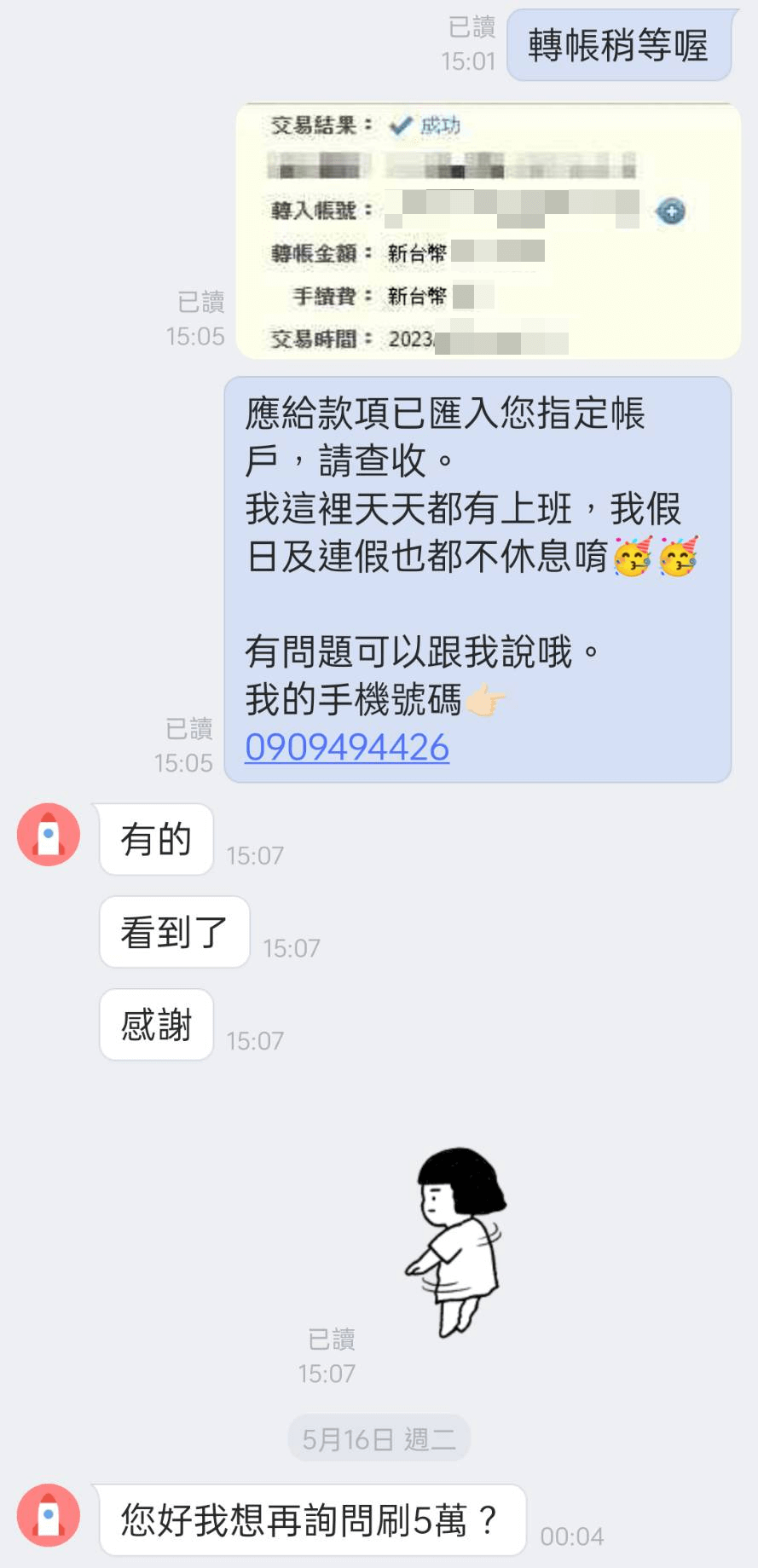 高小姐在網站上勤勤懇懇服務刷卡換現金十餘年,經手客戶上百上千位,其中更有不少客人覺得我們服務周到,因此回頭再找我們服務的。